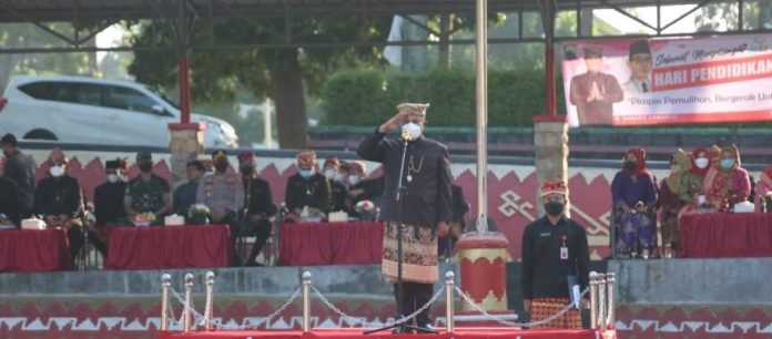Pemerintah Kabupaten Lampung Selatan menggelar Upacara Peringatan Hari Pendidikan Nasional Tahun 2022 yang bertempat di Lapangan Korpri, Pemkab setempat, Jum’at, 13 Mei 2022.