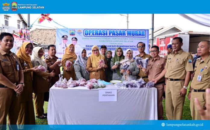 Menjaga daya beli masyarakat agar tetap kuat selama Ramadan 1447 Hijriah, Pemerintah Kabupaten (Pemkab) Lampung Selatan menggelar Operasi Pasar Murah di Lapangan Desa Sukaratu, Kecamatan Kalianda, pada Senin (2/3/2026).