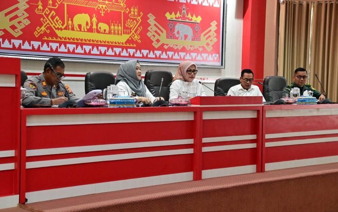 Rapat yang dipimpin Penjabat Sekda Kabupaten Lampung Selatan, Intji Indriati, diikuti Staf Ahli Bupati Bidang Keuangan, Achmad Herry, Kepala Bappeda, Aryan Sahurian, Kepala Dinas Perkim, Aflah Efendi, Perwakilan Dinas PU-PR dan Camat Se- Kabupaten Lampung Selatan.