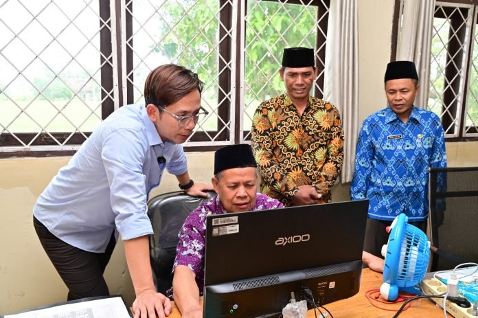 Selain menyerahkan bantuan, Bupati Egi meninjau titik lokasi banjir di Desa Merak Belantung sembari mencari penyebab banjir. Di bawah terik matahari, Bupati Egi berjalan kaki melewati jalan becek menyusuri area persawahan memastikan akar persoalan penyebab banjir.