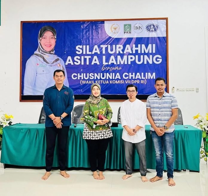 DPD Association of The Indonesian Tours And Travel Agencies (ASITA) Lampung bersilaturahmi dengan Wakil Ketua Komisi VII DPR RI ibu Chusnunia Chalim yang membidangi Pariwisata dan Ekonomi Kreatif di Sekretariat DPW PKB Pahoman Bandar Lampung pada Jum’at (7/3/2025).