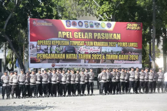 Kapolres Lampung Selatan Yusriadi Yusrin menyampaikan, pengamanan Natal dan Tahun Baru 2024 di Wilayah Kabupaten Lampung Selatan, Polres Lampung Selatan melibatkan personil gabungan yang terdiri dari Polri, TNI, Dishub, Pol PP, Dinkes, Damkar, Basarnas 18, dan instansi pendukung lainnya.
