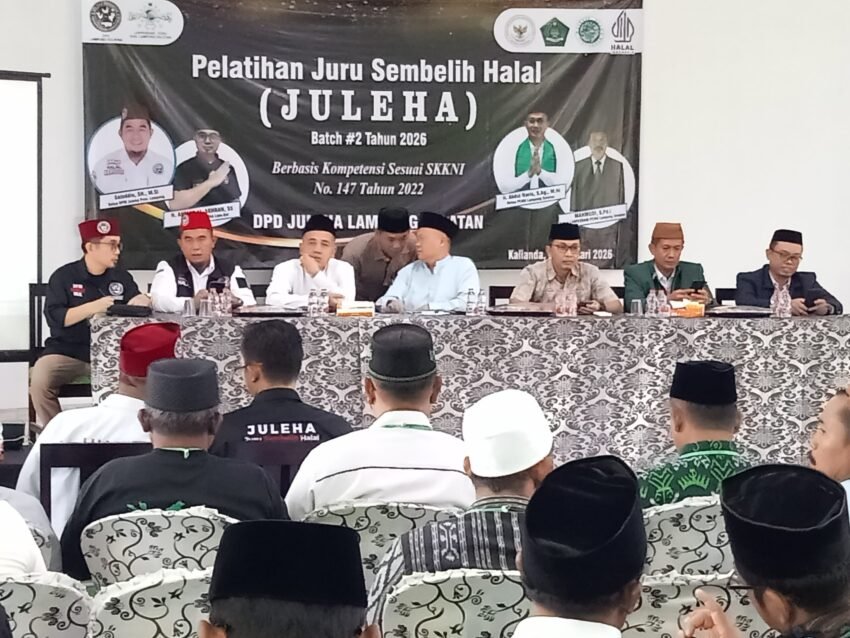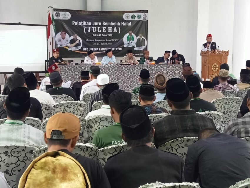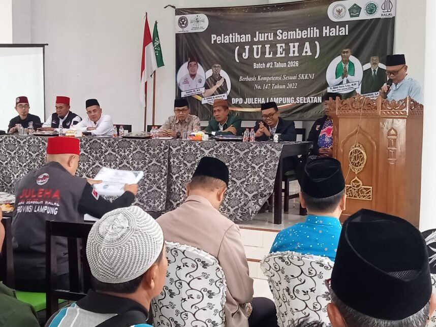 Juru Sembelih Halal (JULEHA) Kabupaten Lampung Selatan melaksanakan pelatihan bagi anggota baru yang diselenggarakan oleh pengurus DPD JULEHA di sekretariat PC NU Kabupaten Lampung Selatan di jalan Transumatera kelurahan Way Lubuk Kecamatan Kalianda pada Sabtu (24/01/2026).