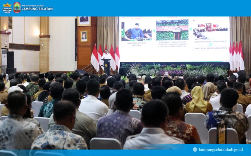 Bupati Lampung Selatan, Radityo Egi Pratama, menghadiri Rapat Koordinasi Nasional (Rakornas) Mitigasi Kekeringan Lahan Pertanian yang digelar Kementerian Pertanian Republik Indonesia (RI), pada Senin (20/4/2026).