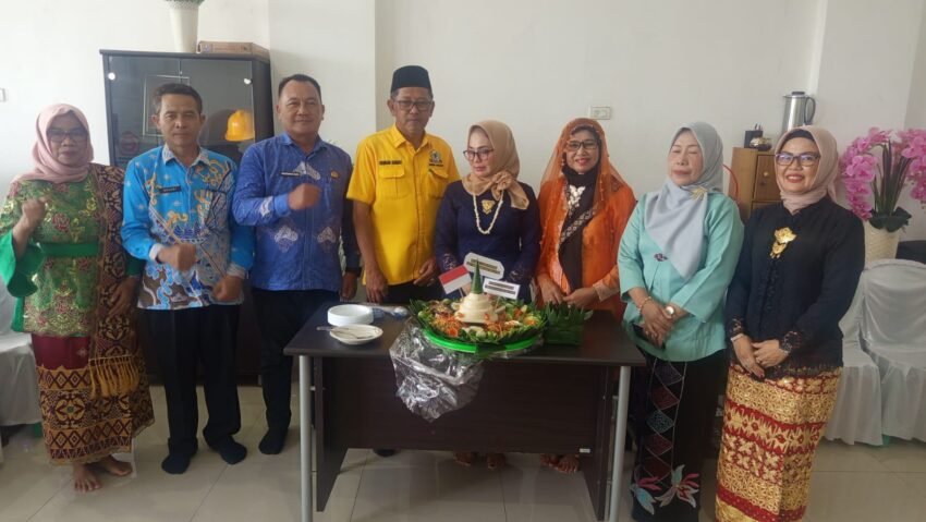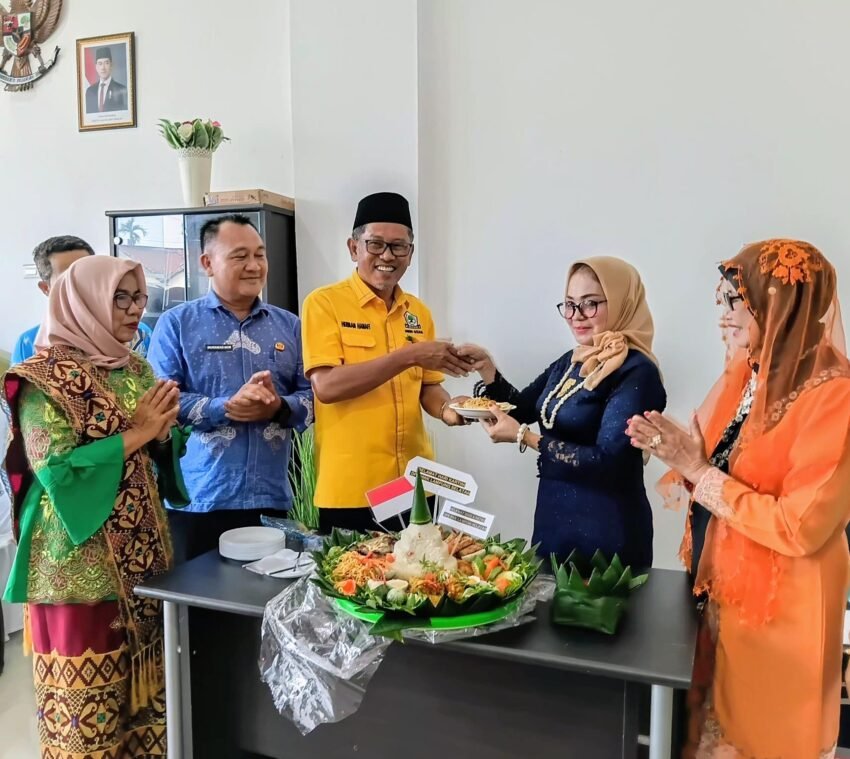 Lalu, secara berurut urutan tumpeng dipotong oleh Sekretaris dan bendahara HWK untuk diberikan ke pembina HWK ibu Ida Dinar dan Sekcam Kalianda M Nur mewakili Camat Kalianda yang ikut hadir.