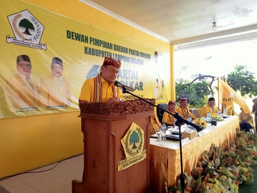 Ketua Partai Golkar Provinsi Lampung Hanan A. Rozak bersama pengurus melakukan temu kader Partai Golkar se-Lampung Selatan yang berlangsung di sekretariat DPD Partai Golkar Lamsel pada Jum’at (31/10/2025) sore.